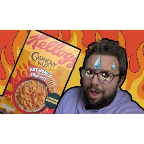 Kellogg's Crunchy Nut Hot Honey (420g) is a limited-edition, "swicy" (sweet and spicy) breakfast cereal featuring golden, honey-coated, and chili-flavoured crunchy curls made from maize, oats, and wheat. Available in the UK, it combines a sweet honey glaze with a subtle chilli kick, designed to be eaten with milk or as a snack.