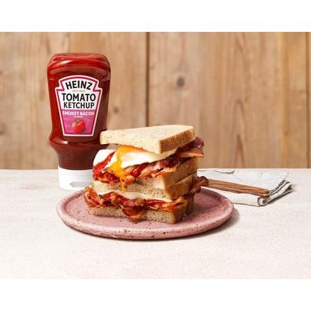 Here's the world's number one Tomato Ketchup with an added smokey bacon flavour that gives it a wonderful intensity. Add a dollop to the side of a cooked breakfast to enjoy a bright, smokey start to the day.